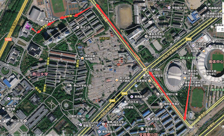 具体上课地点路线图:(1)燕山大学文法学院路线图
