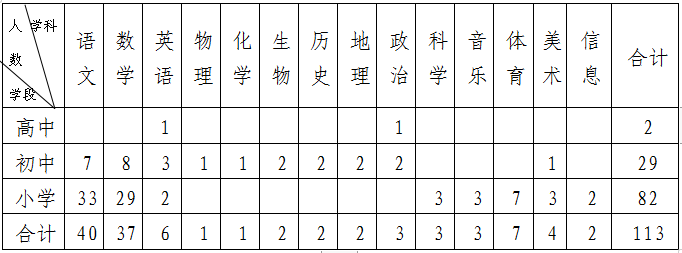 说明:①小学科学学科招聘物理学专业、化学专业、生物学专业、现代教育技术专业和计算机信息技术专业;信息技术学科招聘现代教育技术专业、计算机信息技术专业。